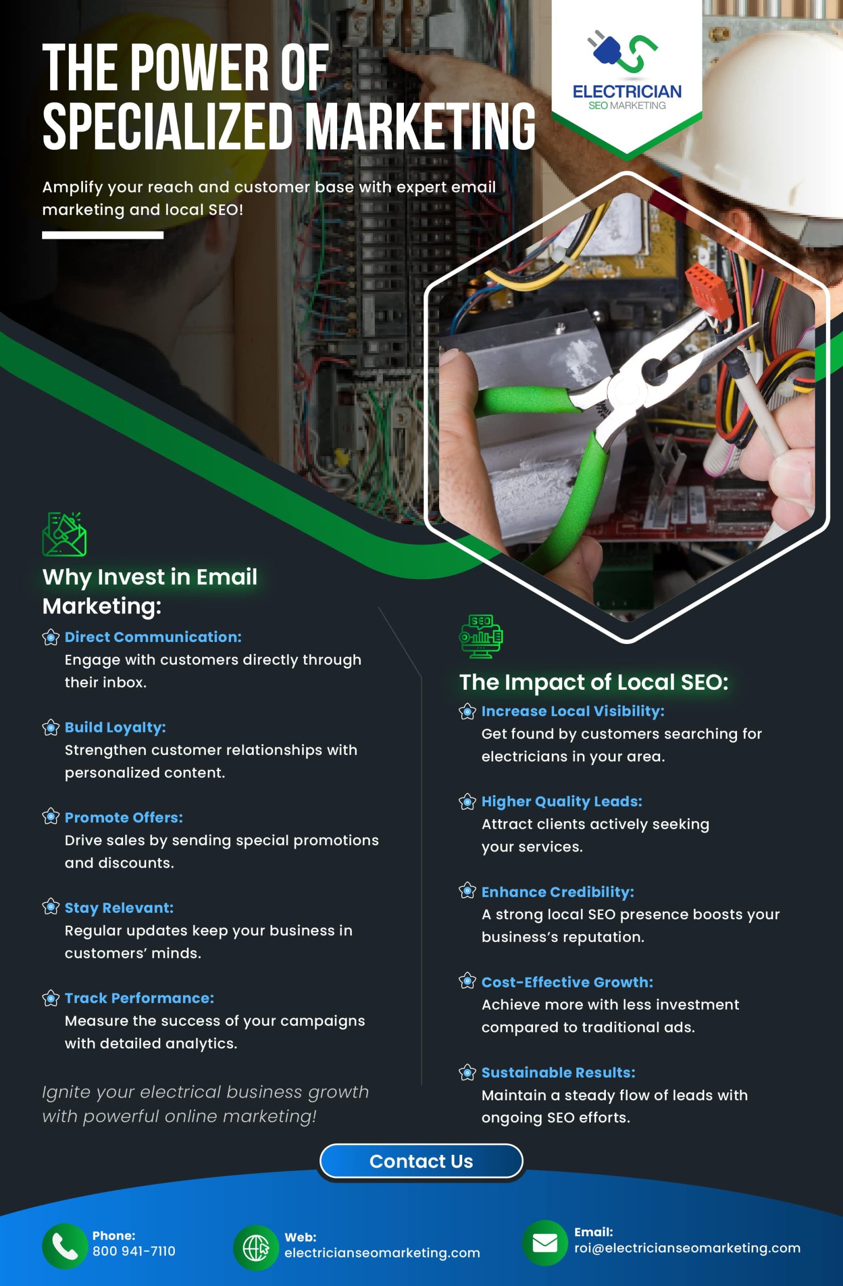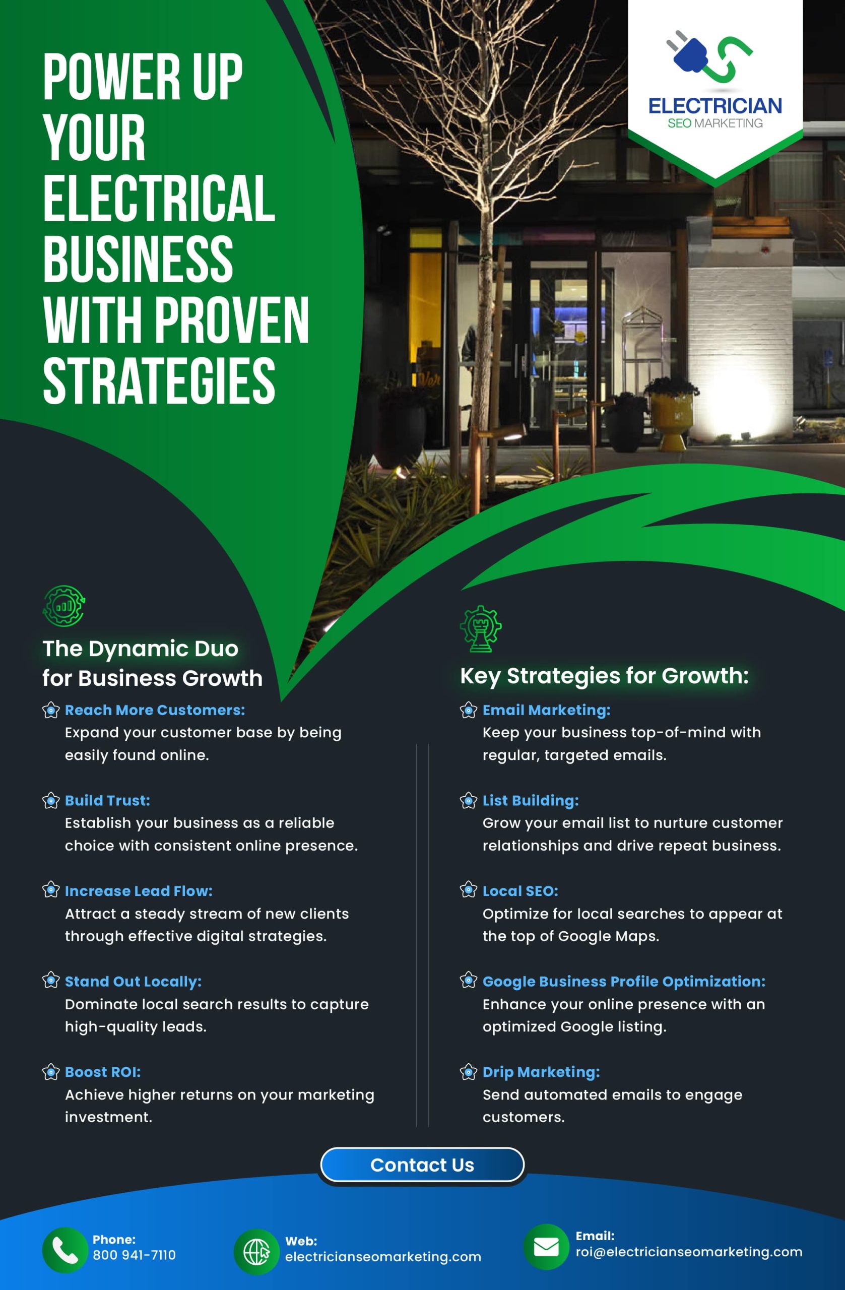 Email marketing and local SEO are the one-two punch that can propel your electrical business forward. This dynamic combination sparks initial interest, nurtures relationships, and drives consistent leads, ensuring your marketing efforts aren’t just a flash in the pan but a sustained source of growth.