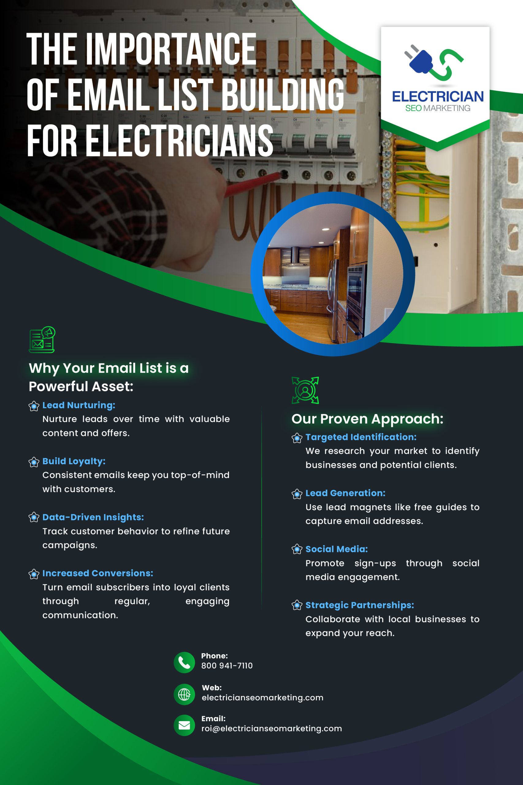 Many forward-thinking electricians have partnered with specialized marketing agencies to build their email lists and drive business growth. At Electrician SEO Marketing, we have the experience and expertise to create a tailored list building strategy that delivers results.