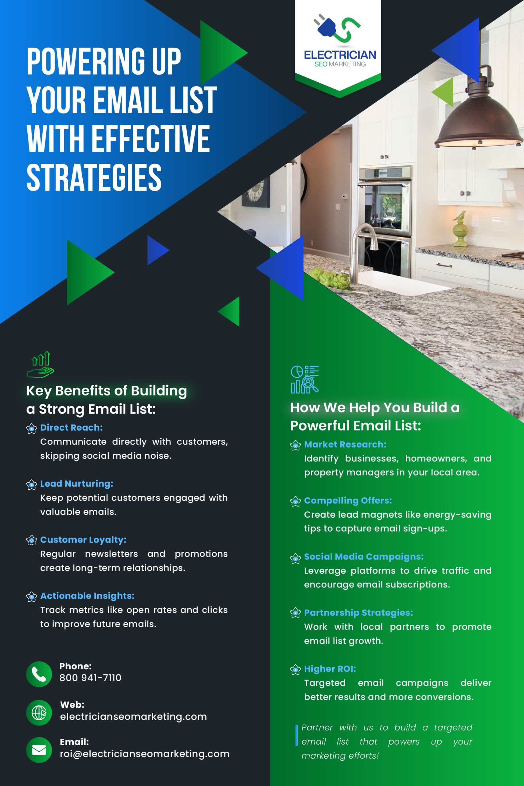 At Electrician SEO Marketing, we understand the unique needs of the electrical industry. We go beyond simple list building; we strategically target your ideal customers. Here’s how we help you build a high-quality email list: