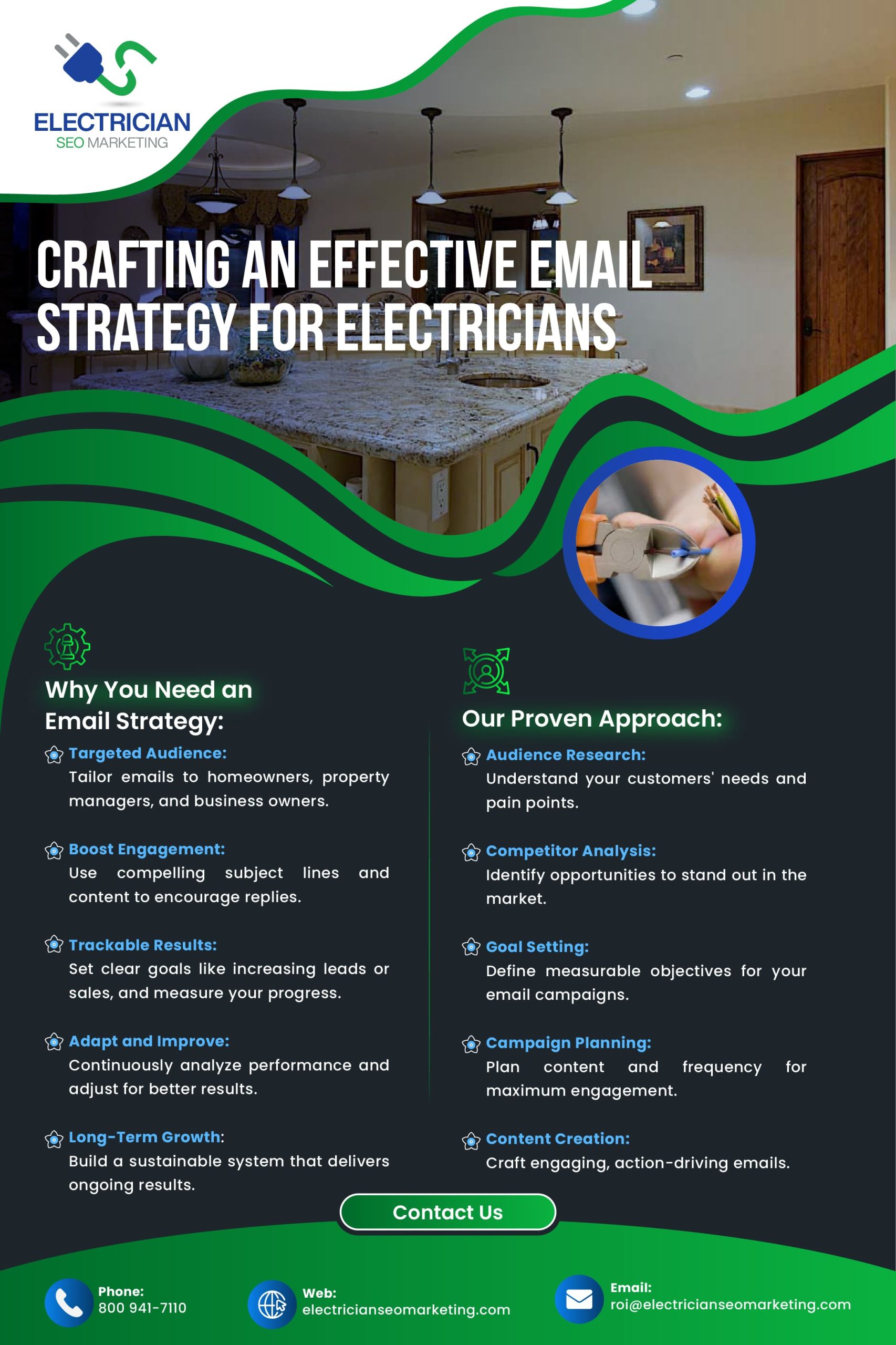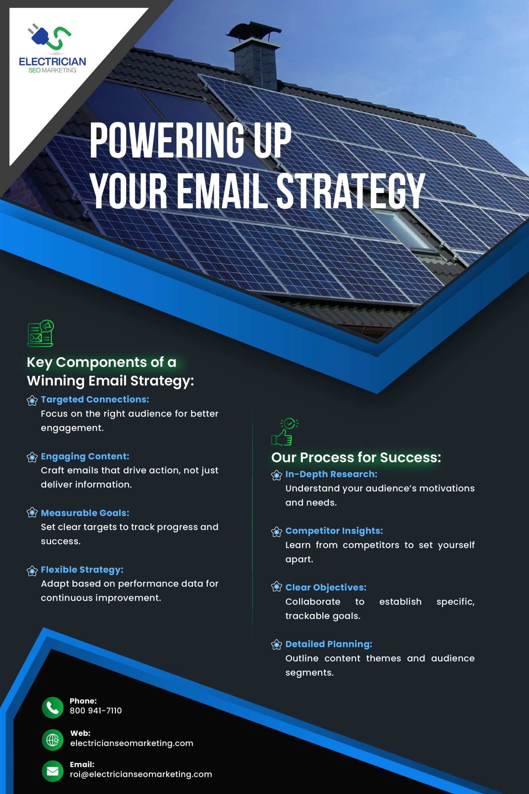 At Electrician SEO Marketing, we specialize in developing customized email strategies for electricians. Our process includes: